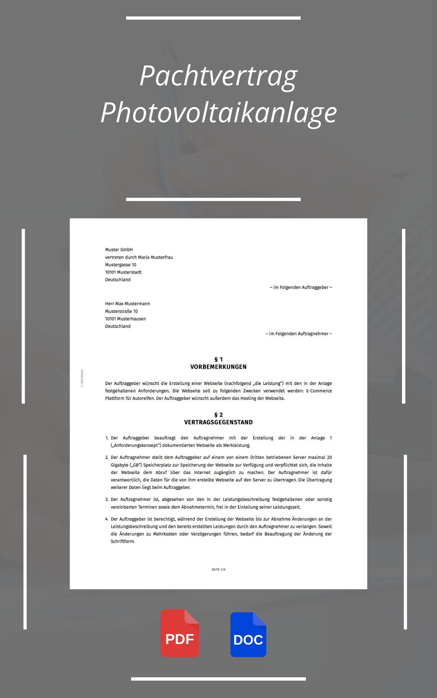 Pachtvertrag für eine Photovoltaikanlage